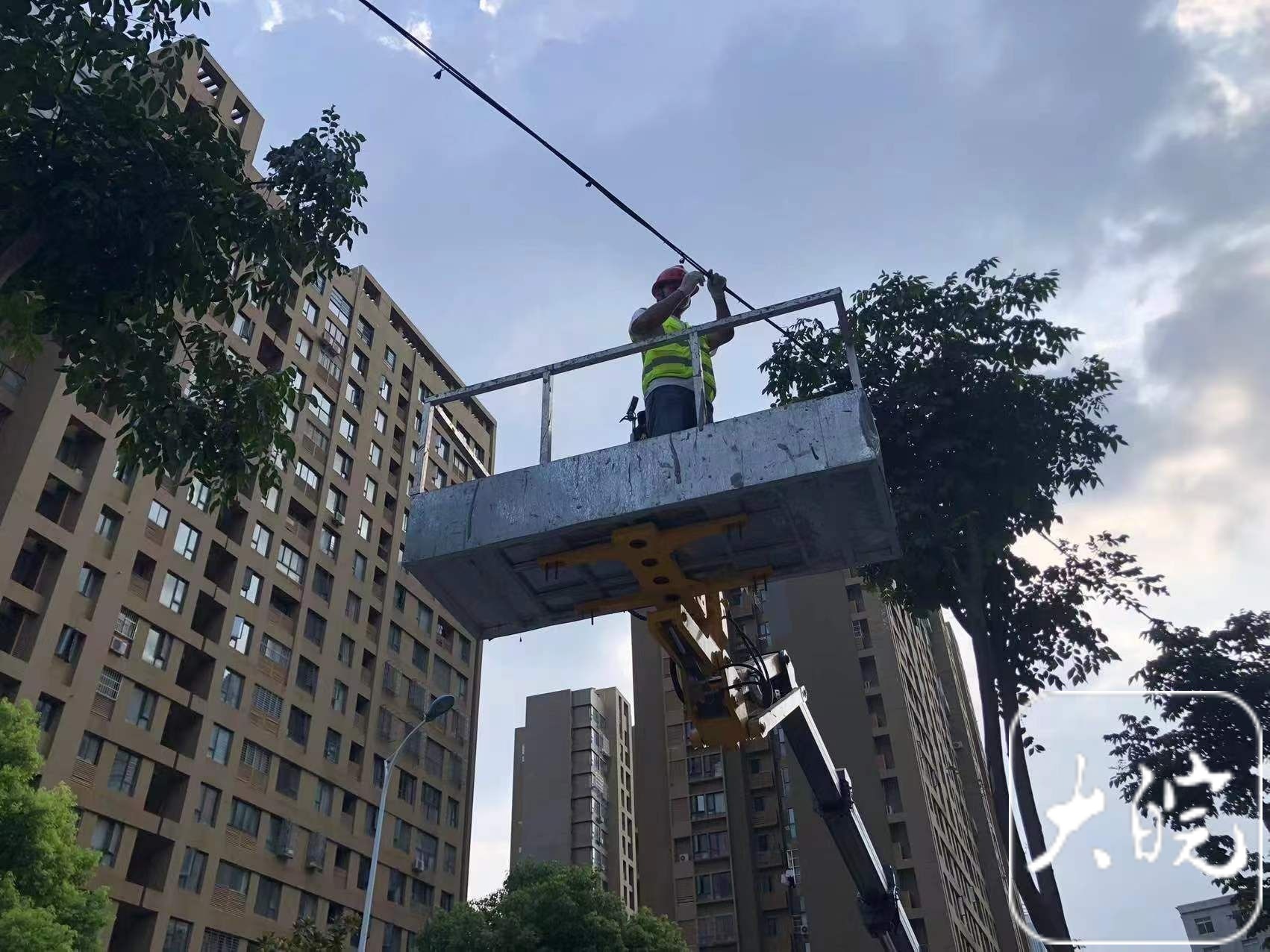 合肥包河城管整治空中“蛛网” 大多为弱电线缆